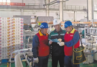 图为11月19日,国网大同市云州区供电公司组织共产党员服务队和青年突击队来到山西云冈纸业有限公司,协助用户对高低压配电室、变压器等设施进行检查,并开展安全用电宣传。 本报记者 于宏 通讯员 王文正摄