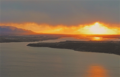 11月24日,冷暖空气交汇碰撞,气流剧烈波动催生独特晚霞。在册田水库上空,橙红霞光穿透层层冷云铺洒而下,暖调霞光与冷色云团形成鲜明对比,与澄澈湖面、远山堤坝相映成景。这一自然奇观持续近半小时,吸引市民纷纷驻足观赏,用镜头定格这壮美瞬间。