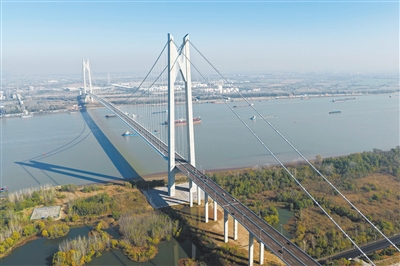 11月26日拍摄的南京新生圩长江大桥(无人机照片)。