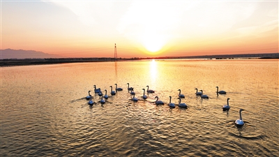 | 桑干河上成群的天鹅正在栖息觅食。“十四五”期间,云州区持续改善生态环境。2024年,全区空气质量二级以上优良天数320天,同比增加15天,优良天数比例达87.67%。御河利仁皂、册田水库出口两个国考断面水质均达到地表水Ⅲ类标准。污水处理厂搬迁扩容工程完工运营,并完成郭家窑头、落阵营等52个村的农村污水治理。全面完工水系连通工程,实现坊城河、西坪河两河复流,有效涵养沿河生态50多公里。完成周士庄、杜庄等6个乡镇集中式饮用水水源地规范化建设。大力推进国土绿化工程,全区现有林地89.35万亩,森林覆盖率24.58%。 |