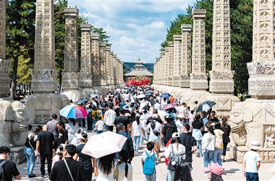 | 云冈石窟景区络绎不绝的游客。“十四五”期间,云冈区坚持打造国际文化旅游目的地核心服务区,加快构筑全域旅游发展格局,大力推动云冈石窟大景区建设,编制了《云冈石窟周边区域文旅产业高质量发展规划》,稳步推进云冈石窟数字中心、晋华宫国家矿山公园提升等项目。同时,持续繁荣发展民宿经济,推动餐饮、住宿设施和服务提质升级,改造石头村、小站村、杨家窑村等周边村落民宿,打造“云冈宿集”。不断推进国道339改线工程,建设山西大学大同校区至云冈石窟研学旅游公路;推动建设云冈旅游集散中心,集成签订咨询、景点预约、紧急援助等功能。 |