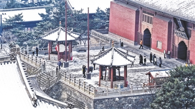 12月16日晨,一场小雪悄然降临,为辽金古刹华严寺披上银装。广场上,覆雪的飞檐斗拱,与放大版“天宫楼阁”、侍女灯相映成趣。在薄伽教藏殿,游客驻足欣赏“东方维纳斯”合掌露齿菩萨,雪光为辽塑添了几分灵动;华严宝塔下,人们仰望纯铜地宫之上的古朴塔身,在大雄宝殿的减柱空间里感受古建与白雪交融的雄浑之美,内外景致共同绘就冬日绝美的辽金艺术画卷。