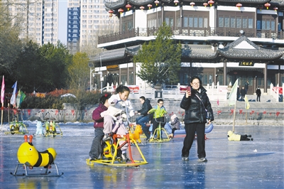 冬日的云冈区平旺公园,冰封的湖面化身欢乐的冰雪乐园,五彩的冰上自行车、卡通造型的冰橇车错落分布,吸引了大批市民前来打卡。同时,冰场每日都会进行冰层安全检测,并配备专业人员巡逻,保障市民游玩安全。这片冰场不仅让市民在家门口体验到冰雪运动的魅力,也为云冈区的冬日增添了浓浓的活力与温情。图为12月21日,市民在冰封的湖面玩冰上自行车。 本报记者 于宏摄