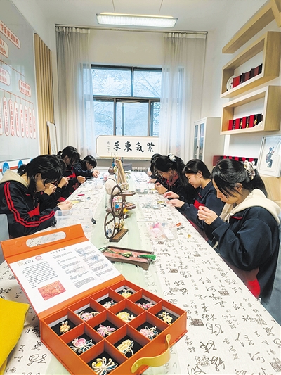 作为全国首批国家级重点职业高级中学与全国中小学中华优秀传统文化传承学校,大同一职中在职业教育的原野上,悄然孕育出一片非遗传承与创新的沃土。学校与大同市唐情结飞天商贸有限公司签订校企合作协议,长期致力于省级非遗项目“大同结艺”的传承与创新,并设立非遗手工工作室及作品陈列室,常态化展出师生优秀作品,成为学校对外交流与特色展示的重要窗口。