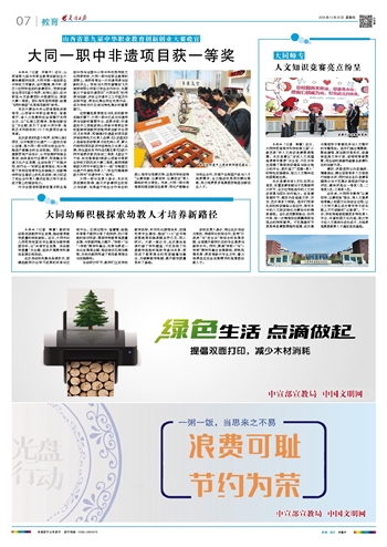 大同一职中非遗项目获一等奖