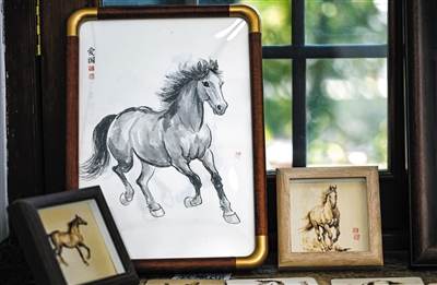 这是12月29日在天津古文化街“喜迎马年,五代画马人马画艺术展”上拍摄的画作。