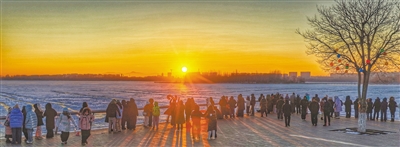 2026年元旦清晨,文瀛湖生态公园银装素裹,封冻的湖面在晨曦中熠熠生辉,数百名游客与市民齐聚湖畔。随着新年第一缕阳光冲破天际,金色光芒洒满冰雪世界,现场欢呼声此起彼伏,大家在冰天雪地中定格美好,许下对新年的愿景,开启充满希望的新征程。