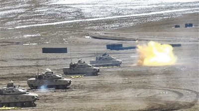一月六日,西藏军区某部坦克分队按编组进行实弹射击考核。