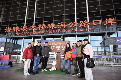 1月6日,旅客在港珠澳大桥珠海公路口岸合影留念。