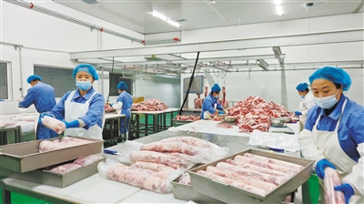 连日来,新荣区花园屯乡苇子湾村亿森源农牧科技有限公司的工人加紧加工羊肉,为即将到来的春节旺季做足准备。