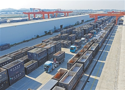 近日,记者从国铁南宁局获悉,二〇二五年西部陆海新通道班列发运集装箱货物一百四十二点五万标箱,同比增长百分之四十七点六,首次实现年发运量突破百万标箱,再创历史新高。 新华社记者 周华摄