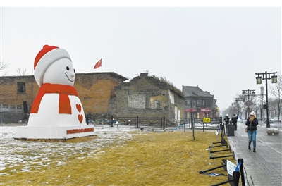 1月9日,大同古城太平楼西南角广场上,一座6米高的巨型雪人开始“营业”,既提升城市活力、吸引游客关注,又为千年古都增添冬趣。