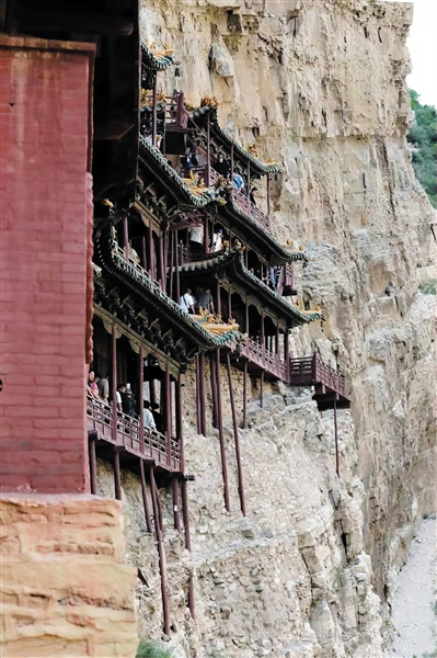 我们不能不说,寇谦之的北天师道在皇帝拓跋焘和重臣崔浩的加持之下,来得太过“猛烈”了。致使这场改革的思想成果,被意外引发的血腥的灭佛运动所完全覆盖。其结果是人所共知的。先是“太武灭法”(444年),后是“文成复法”(460年),政治变脸,弹指之间。不光佛教横遭劫难,僧人或死或逃,风吹云散;皇太子被诬谋反,忧郁而终;道教亦遭冷遇,星冠弹落,寇谦之愔寂故去;崔浩亦未幸免,突陷“国史碑案”,惨遭灭族……在公元5世纪的历史逻辑之中,或许只有一个例外:大劫43年后——太和十五年(491年)这一年正是孝文帝拓跋宏“建明堂”、“改太庙”,进行汉化改革最关键的年份。平城东南的大道坛也飘来一纸诏书:“夫至道无形,虚寂为主。自有汉以后,置立坛祠,先朝以其至顺可归,用立寺宇。昔京城之内,居舍尚稀,今者里宅栉比,人神猥凑,非所以祗崇至法,清敬神道。可移于都南桑干之阴,岳山之阳,永置其所,给戶五十,以供斋祀之用,仍名为崇虚寺。(《魏书·礼志》)”此诏中对于平城人居情况的描述,与我们在上文“里坊”节中用数模推演出的数据恰是一种相互印证。当然也可能存在道教失宠失势的因素在内,但无论如何,在静轮天宫消匿之后,曾经大红大紫的道坛也与大都会告别了。历史的结局常常是前因的悖论,经多路专家的考证,迁到恒山中的道坛(崇虚寺),就是今天闻名遐迩的建筑巨珍悬空寺。虽然仅存此一脉,但峥嵘而崔嵬,犹显其“欲绝尘嚣”狂想中的风采。