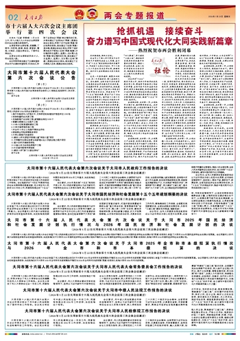 大同市第十六届人民代表大会第六次会议关于大同市2025年国民经济 和社会发展计划执行情况与2026年国民经济和社会发展计划的决议