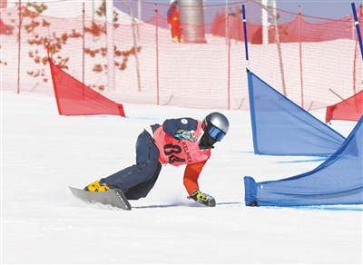 在我市举行的单板滑雪比赛为期两天,设平行大回转与平行回转,分男子组与女子组展开角逐。大同代表队共13人参赛。在昨日进行的平行回转项目中,我市选手刘姝廷再夺1金,至此,单板滑雪项目大同代表队共收获2金1银3铜的好成绩。