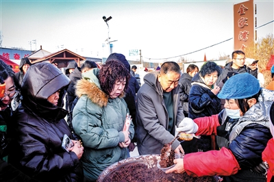 本报讯 (记者 段雨萌) 1月26日清晨,平城区白登山街道金家湾村一派热气腾腾的景象。大铁锅咕嘟作响,杂粮腊八粥的甜香漫溢村落,环卫工人、快递小哥与村民、市民们手捧热粥,脸上满是笑意。当日,金家湾村“暖意迎新春,年味‘金’满家”腊八系列活动正式启幕。