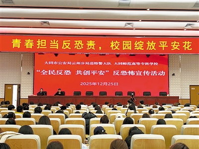 本报讯(记者 孙海军 解慧)近日,大同师范高等专科学校联合市公安局云州分局巡特警大队开展反恐宣传教育活动,普及反恐法律知识,强化师生反恐防恐意识,共同筑牢校园安全屏障。