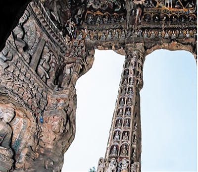 当游客走过云冈石窟五华洞(9至13窟),那些具有希腊地中海风格的伊奥尼亚柱式柱头、科林斯柱式柱头、波斯兽形柱头融入中国汉式仿木构的建筑,顺着纹理仔细揣摩建筑上的那些造像,高挺的鼻梁、深陷的眼窝、波浪般的卷发——这些特征清晰地指向犍陀罗艺术传统。然而那低垂的眼睑、微抿的嘴角,以及面容中弥漫的无限悲悯与宁静,却又是东方艺术之美的代表。就在这一刻,我们忽然明白:大同,这座被誉为“中国雕塑之都”的中国大古都,或许是每一位造访它的人寻找犍陀罗文明回响最意想不到、也最深刻的地方。
