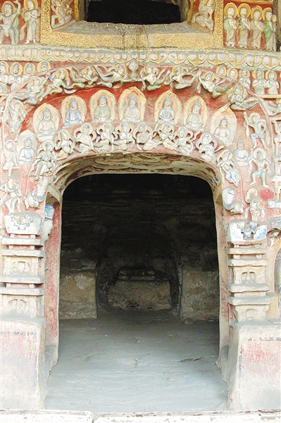 走进中期开凿的第5、6窟,变化更为明显。窟内富丽堂皇,汉式楼阁斗拱的元素大量出现。佛像的面容变得清秀,身材修长,褒衣博带式的汉装取代了偏袒右肩的袈裟,衣带飘逸,神情也变得温和亲切。犍陀罗的基因在这里已经像盐溶于水,看不见,却无处不在,沉淀为对空间布局的宏大构思。