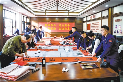 新春佳节即将来临之际,1月29日,平城区委宣传部、区文联组织书法家协会骨干走进古城消防救援站开展“迎春送福”活动。书法家们挥毫创作,融合消防职业特色书写春联、福字,为营区增添喜庆氛围。据悉,此次活动是该区“韵满古都 首善平城”系列活动之一。 本报记者 韩堃摄