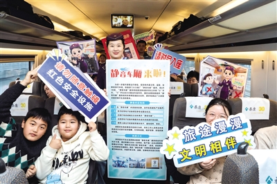 2月1日,中国铁路上海局集团有限公司合肥客运段在G54次列车上进行“静音车厢”宣介活动。