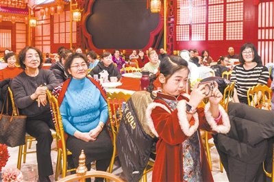 近日,平城区文瀛湖街道文瀛社区与辖区物业联合举办“邻里同乐·温情贺岁”业主新春联欢会。联欢会由社区居民自编自演,歌舞、京剧选段等节目精彩纷呈,让居民感受到了社区温暖,提升了幸福感与归属感。图为社区居民欣赏精彩的文艺表演。 本报记者 韩堃摄