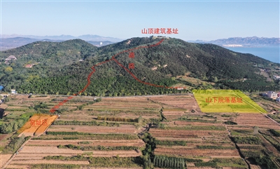山东青岛市琅琊台战国秦汉时期遗址山顶建筑与山下院落、窑址区位置示意图(资料照片)。