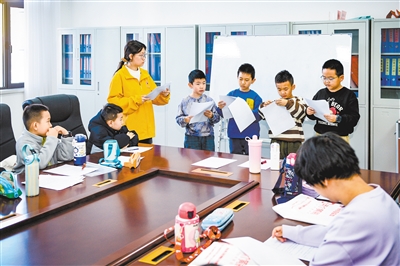 为让孩子们度过一个充实的假期,我市部分社区创新推出形式多样的假期托管服务。社区托管服务精准对接家庭实际需求,不仅有效解决了部分家长的后顾之忧,更通过丰富的课程设置,促进了孩子们德智体美劳全面发展。图为2月5日上午,平城区文瀛湖街道文瀛社区托管班老师带领孩子进行阅读。 本报记者 韩堃摄
