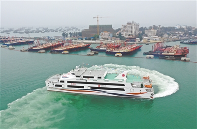 2月5日,“北游36”轮在广西北海国际客运港首航,由北海驶往涠洲岛,正式投入当地水路春运。