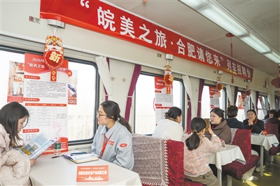 当日,由中国铁路上海局集团有限公司合肥客运段联合合肥市人力资源与社会保障局举办的列车招聘会在上海站开往阜阳站的K8362次列车上举行,为返乡游子架起就业对接的桥梁。 新华社记者 杜宇摄