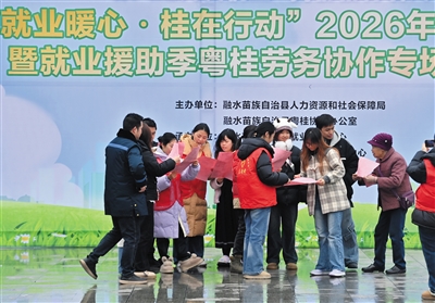 二月八日,广西柳州市融水苗族自治县举行粤桂劳务协作暨春风行动专场招聘会,两地四十多家企业共提供上千个工作岗位。