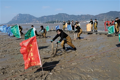 2月8日,一场滩涂“木泥马”挑战赛在福建省霞浦县冬瓜山赶海基地举行,选手们用传统赶海工具“木泥马”(又称“泥橇”)在滩涂上接力滑行、奋勇争先,以别样方式迎接马年春节。“木泥马”这一传统渔具如今变身地方特色文旅项目,成为游客赶海新玩法。同时,霞浦县宏昌工业文创基地内的跑马场和马文化美术展也随春节临近热度攀升,吸引游客参观、体验。