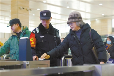 春运期间,大同铁路公安处山阴南站派出所民警主动为老弱病残等重点旅客提供帮扶,提行李、指路线、寻失物……一个个暖心举动让旅途暖意融融。 通讯员 魏志荣摄