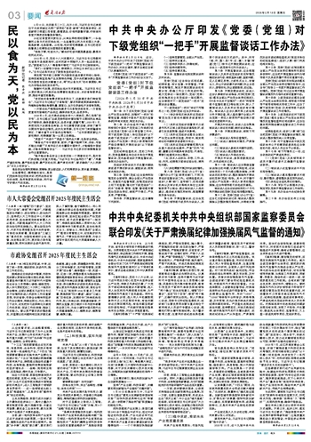 中共中央办公厅印发《党委(党组)对下级党组织“一把手”开展监督谈话工作办法》