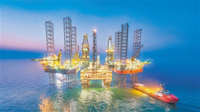 这是二月二十四日拍摄的渤海油田海上油气平台作业现场(无人机照片)。