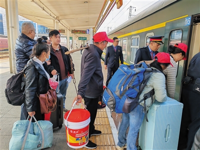 2月24日,云南铁路开行多趟务工列车,运送1000多名务工人员前往长三角和珠三角地区返岗务工。据了解,为满足春节假期结束后云南外出务工人员的出行需求,云南沾益、广南、丘北、富宁等地人社部门和铁路部门紧密合作,采取统一购买车票、开行务工列车、铁路部门开展暖心服务等方式,帮助外出务工人员返岗。云南铁路还将继续加大运力投入,陆续开行前往浙江、广东、上海等方向的多趟务工列车,为务工人员提供便捷高效的出行服务。