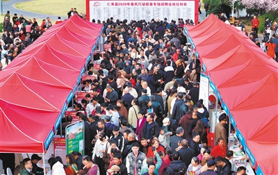 这是二月二十五日在四川省眉山市仁寿县拍摄的二〇二六年春风行动新春专场招聘会(无人机照片)。