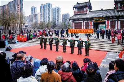 2月28日,在元宵节即将来临之际,平城区新旺街道在北魏明堂遗址公园南门举办文艺展演。活动以“文化为笔、艺术为墨”,汇聚街道各艺术团队,带来传统民俗与现代艺术交融的精彩节目,为市民献上一场充满节日喜庆与文化魅力的视听盛宴,旨在共庆元宵佳节,共绘美好生活画卷。 本报记者 韩堃摄