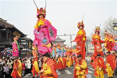 本报讯 (记者 陈杰) 铿锵锣鼓响彻古城,多彩社火喜闹元宵。3月1日上午,大同古城内欢潮涌动,喜庆氛围浓厚,备受市民和游客期待的“喜乐元宵游平城”社火巡游活动拉开帷幕。活动现场,我市表演者以街头行进式表演方式,为观众呈现了挠阁、秧歌、舞狮等民俗社火,在精彩表演营造的浓浓节日氛围中,市民、游客看民俗社火,品年俗年味,欢欢喜喜迎元宵佳节。
