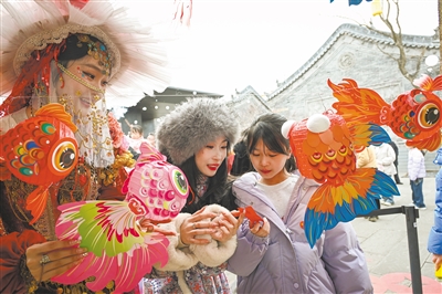 农历正月十五元宵节,大同古城东南邑历史文化街区人头攒动。丝路塔前,市民、游客赏鱼灯、猜灯谜,在融融暖意中感受传统民俗魅力,喜乐过节。