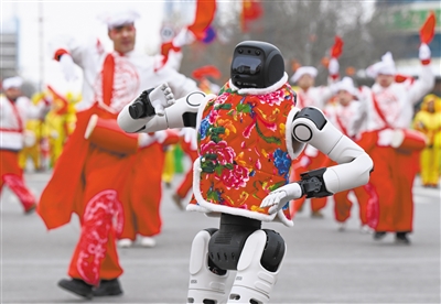 3月3日,以“文润庭州·乐享元宵”为主题的新疆昌吉市非遗社火展演活动在昌吉市启幕,为各族群众送上节日祝福。这是机器人参与社火表演。