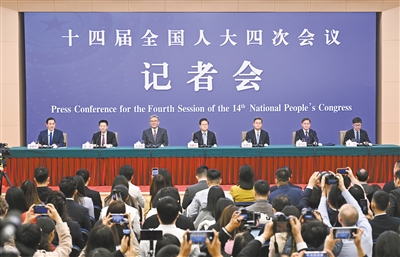 3月6日,十四届全国人大四次会议在北京梅地亚中心新闻发布厅举行记者会。国家发展和改革委员会主任郑栅洁、财政部部长蓝佛安、商务部部长王文涛、中国人民银行行长潘功胜、中国证券监督管理委员会主席吴清就发展改革、财政预算、商务、金融证券等相关问题回答中外记者提问。