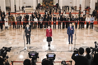 3月7日,全国政协十四届四次会议第二场“委员通道”集体采访活动在北京人民大会堂举行。 新华社记者 曹祎铭摄