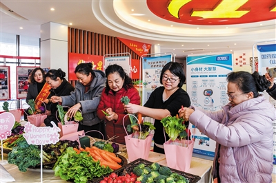 3月8日上午,平城区文瀛湖街道华北星社区联合辖区物业举办“温情三八节·巧手悦时光”主题活动。活动以DIY手作为载体,向广大女性业主送上节日祝福,在丰富居民文化生活的同时,传递社区温情,拉近邻里距离,进一步营造温馨和谐的社区氛围。图为社区女性居民正在制作创意蔬菜花篮。