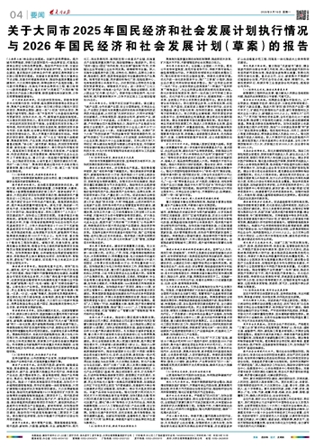 关于大同市2025年国民经济和社会发展计划执行情况与2026年国民经济和社会发展计划(草案)的报告