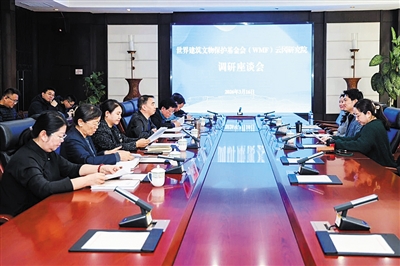 本报讯 (记者 赵小霞) 3月16日,世界建筑文物保护基金会(WMF)东亚项目高级总监赵宏禧、中国执行主任姜玥、中国北京代表处办公室主任姜荔云一行莅临云冈研究院,开展座谈交流与实地调研。云冈研究院党委委员卢继文、崔晓霞,相关部门负责人及部分青年学者参加座谈会。会议由党委委员、副院长闫丁主持。