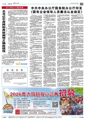 新华社北京3月22日电 近日,中共中央办公厅、国务院办公厅印发了《国有企业领导人员廉洁从业规定》,并发出通知,要求各地区各部门认真遵照执行。