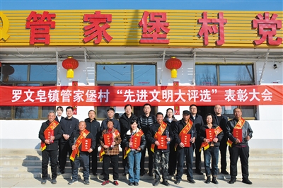 本报讯 (记者 宋芳 通讯员 李雅楠)3月20日上午,阳高县罗文皂镇管家堡村党群服务中心院里热闹非凡,这里正在举办“先进文明大评选”表彰大会。
