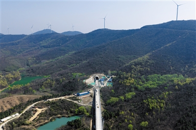 这是3月29日拍摄的沪宁合高铁丰山隧道(无人机照片)。