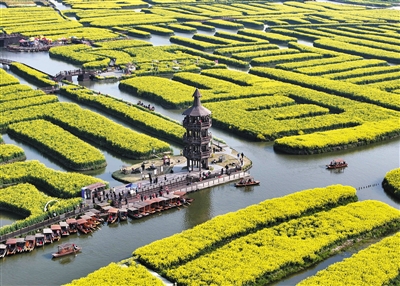 时下,江苏省兴化市千垛景区的油菜花进入盛花期,吸引众多市民游客前来踏青赏花,放松身心。